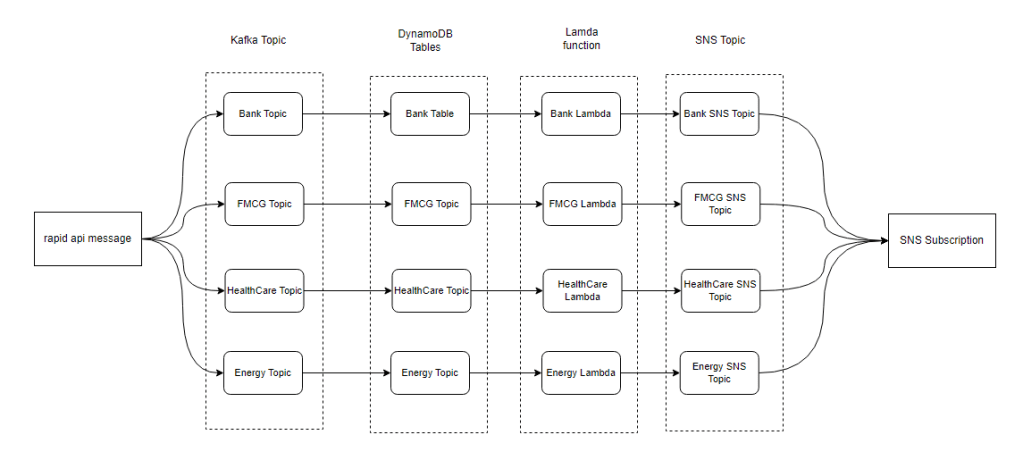 The below diagram explains the data flow from API to sending email notification and the approach of providing channel for each sector were avoiding the cross over.