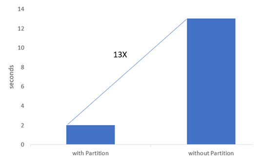 Below is a comparison of running the same query on two tables — one without partitioning and another with partitioning. The performance difference is massive. This clearly demonstrates why partitioning is one of the key techniques that make data skipping so powerful.