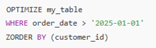 - Writes new compacted Parquet files where related rows (close in Z-order) are stored physically close together.
