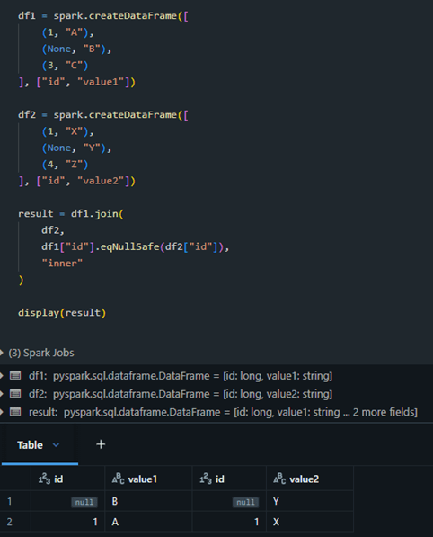- Use eqNullSafe for safe equality checks
