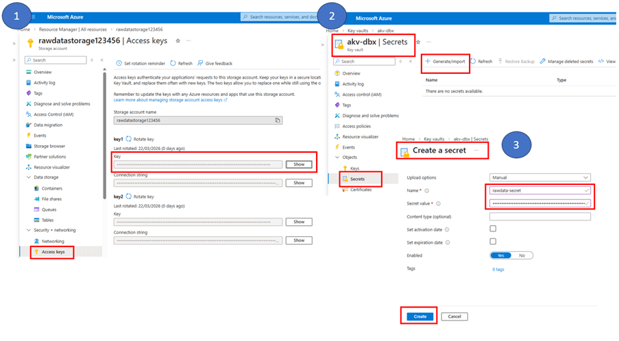 Get access key from storage account and add secret in azure key vault secret