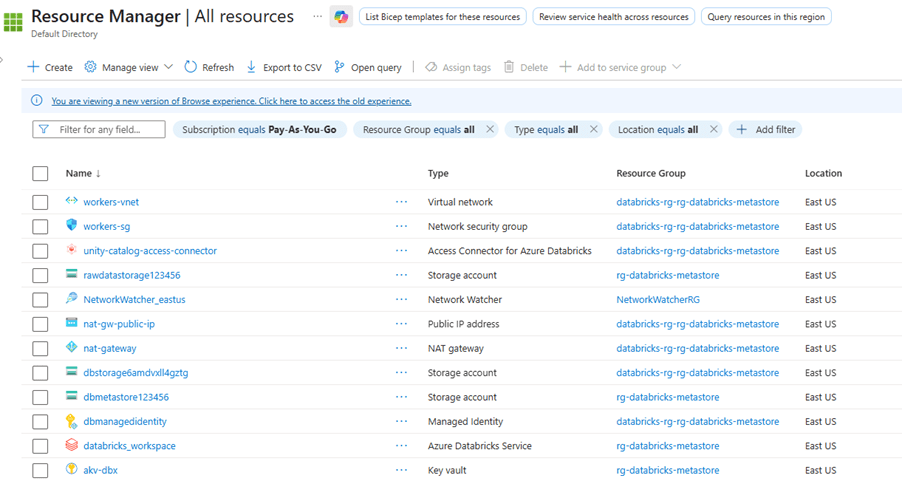 - Databricks access connector with storage blob contributor role