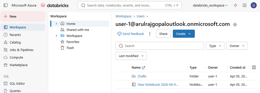 Login using the user-1 account, and the user can access the Databricks workspace based on the permissions granted.