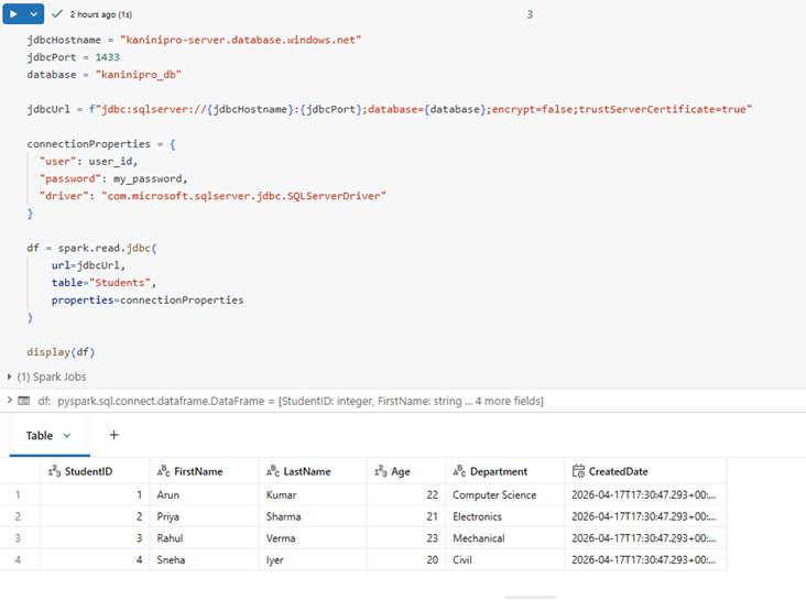 Here is the source code infra setup using terraform and jdbc script to read sql table from databricks.