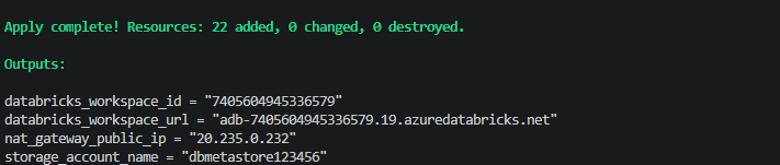 while apply the terraform code, all resources deployed and below is the databricks url along with it is nat-gateway-public-ip.