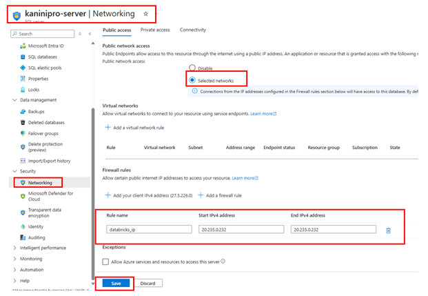 Able to access the sql server after whitelisting.